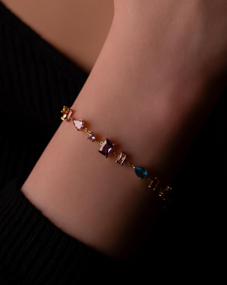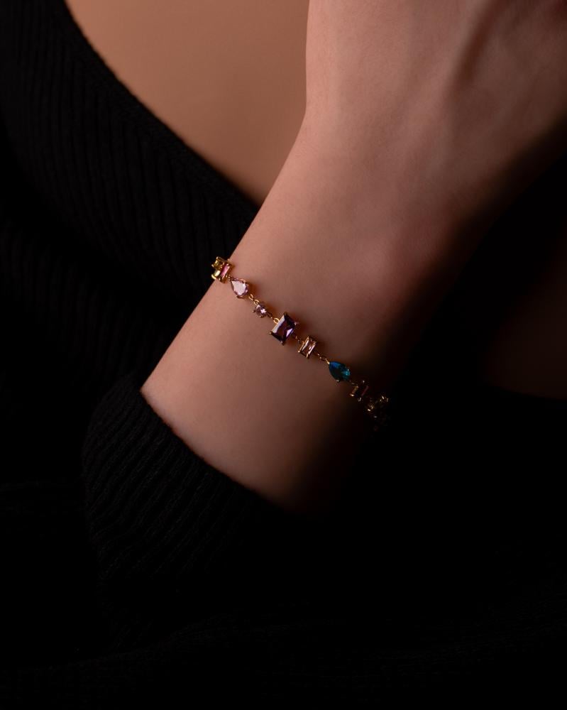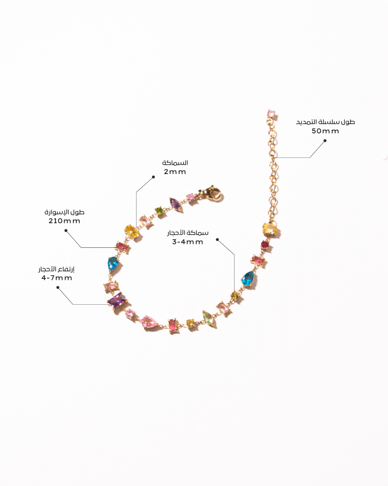 إسوارة أمسية من مجموعة أمسية، مطلية بالذهب عيار 18، مصممة بأسلوب أنيق يدمج بين الجرأة والنعومة، وتُزيّنها أحجار براقة بأشكال وأحجام متنوّعة مستوحاة من أجواء الليالي الصيفية الفاخرة. تتكامل بتناغم ساحر مع قلادة وأقراط أمسية، لتمنحك إطلالة متألقة لا تُنسى.