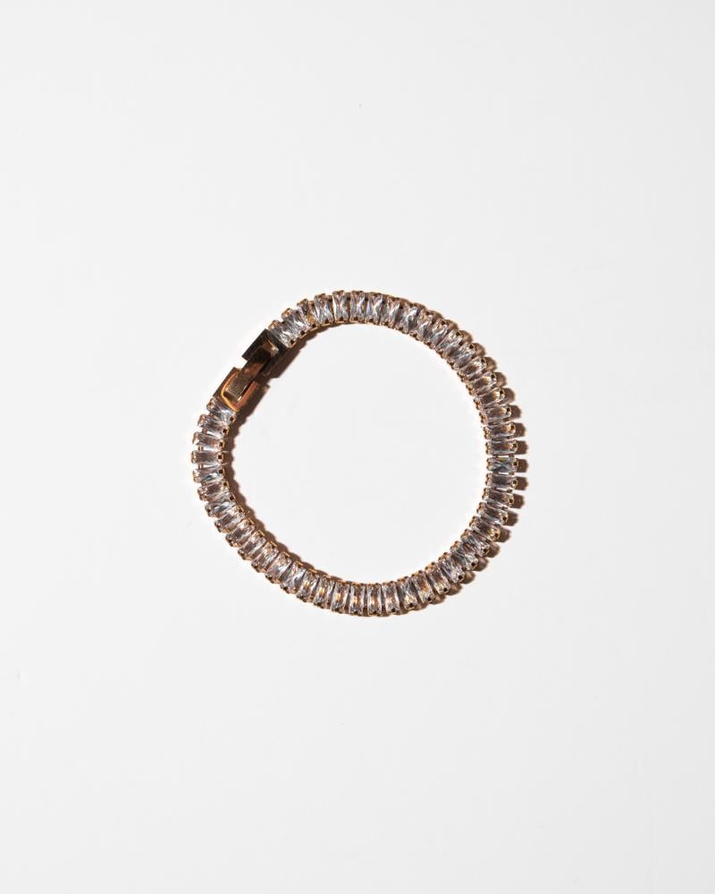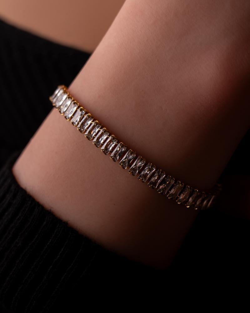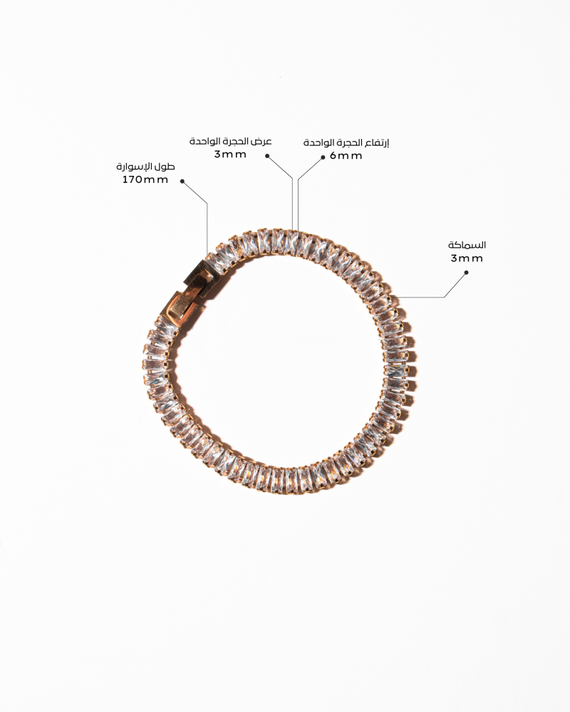 إسوارة ثراء من مجموعة ثراء تجسد الأناقة والفخامة بأسلوب متميز. مطلية بالذهب عيار 18 ومزينة بأحجار الزركون اللامعة، تعكس التصميم الرائع الذي يتناغم بشكل مثالي مع قلادة ثراء. تضفي هذه الإسوارة لمسة من الجاذبية المهيبة على أي إطلالة، مع تفاصيل دقيقة تبرز جمالها بشكل مذهل.