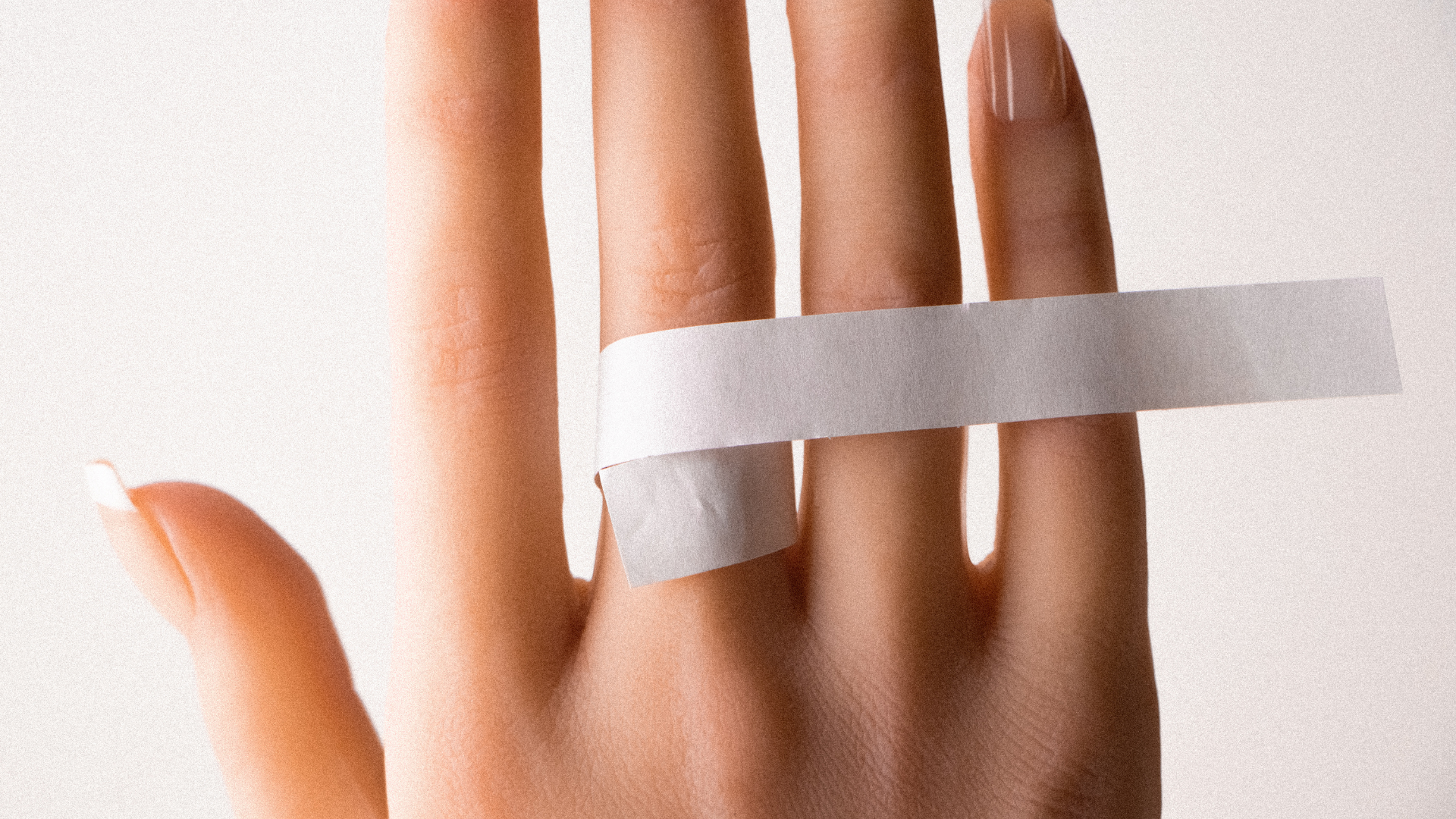 الخطوة الأولى: أجلبي قطعة من الورق أو الخيط وقومي بلفها حول نهاية إصبعك الذي ترغبين بمعرفة مقاسه.