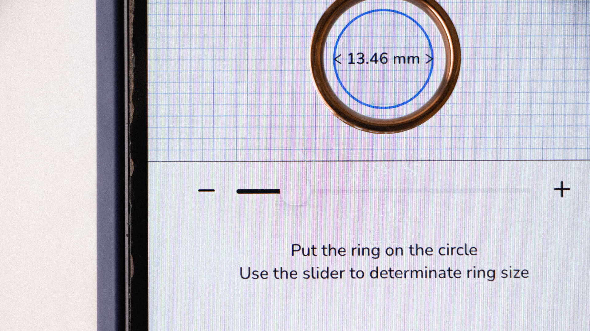 الخطوة الثالثة: تأكدي بأن الدائرة تغطي فراغ الخاتم بشكل كامل كما هو موضح بالصورة التالية. بعد ذلك، قومي بالنقر على Show my ring size.