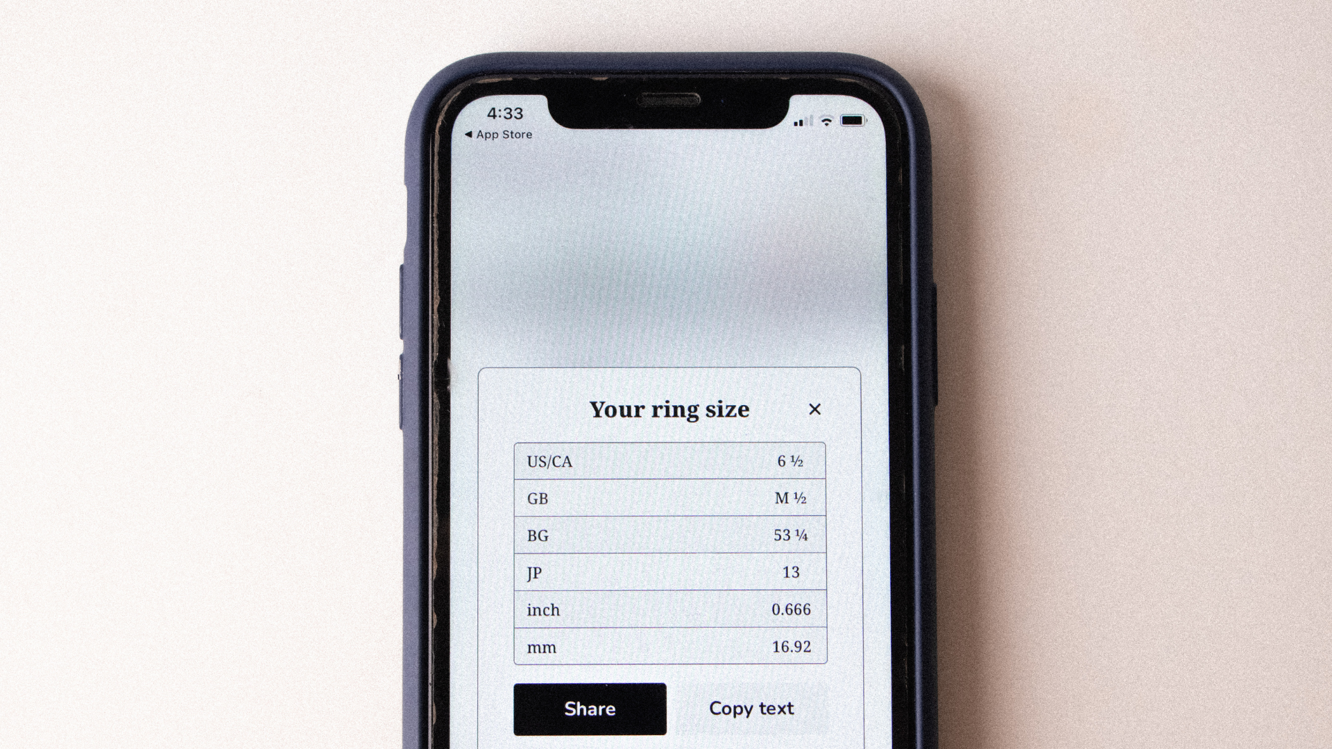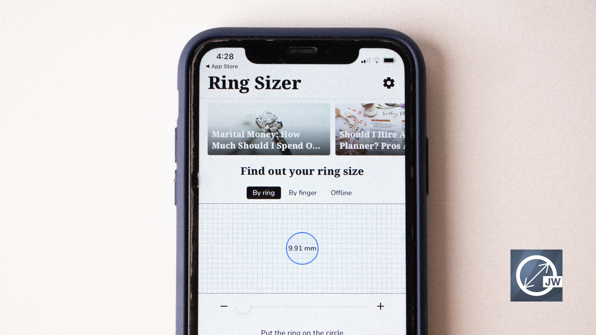 الخطوة الأولى: قومي بتحميل تطبيق Ring Sizer على هاتفك الجوال. سوف تجدين صورة التطبيق في زاوية الصورة التالية.