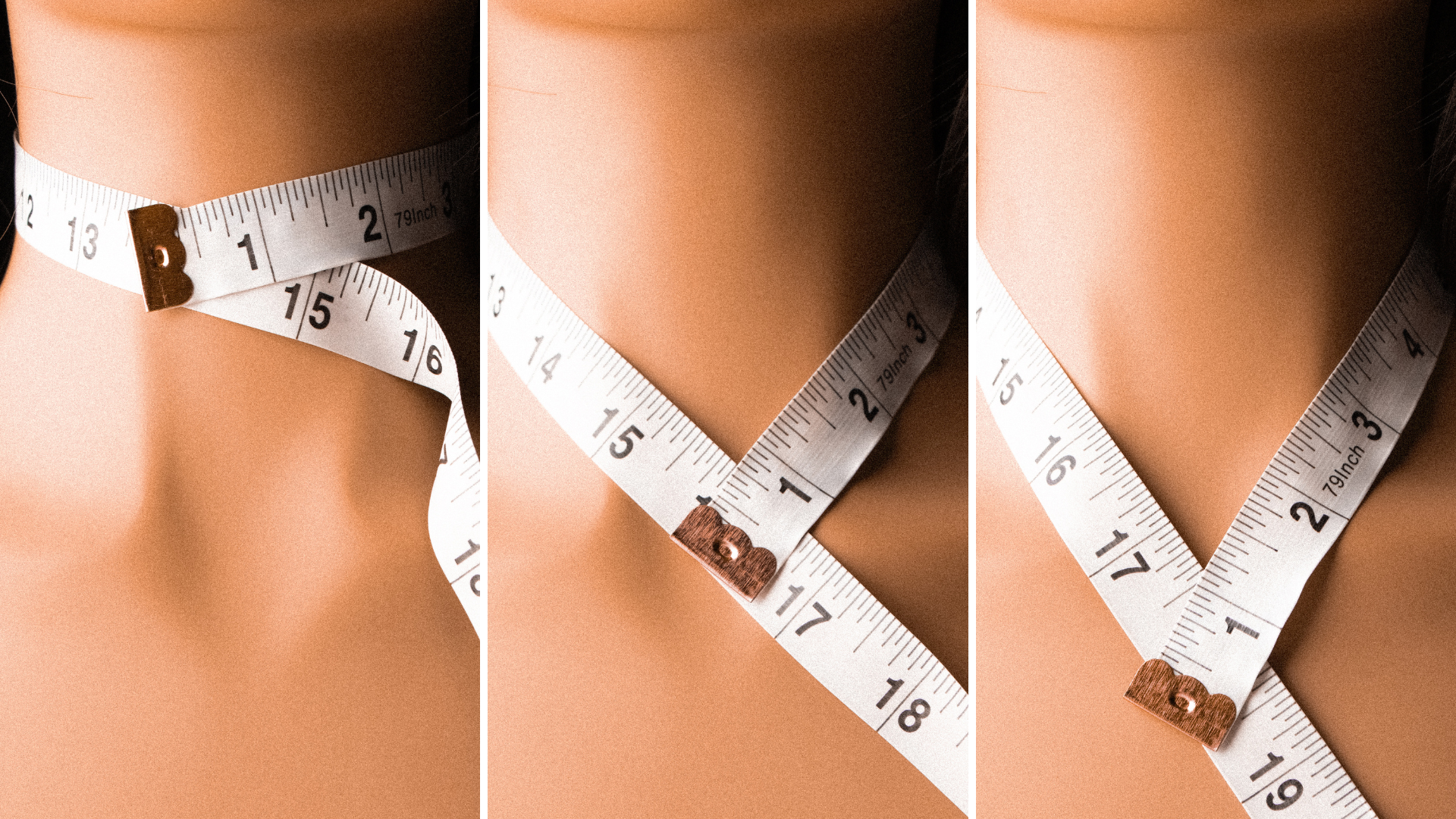 الخطوة الأولى: أحضري شريط قياس ولفيه حول نهاية عنقك حيث ترتدي قلادتك عادةً وأستخدمي جهة الإنش.