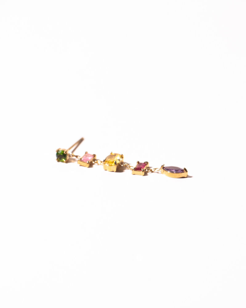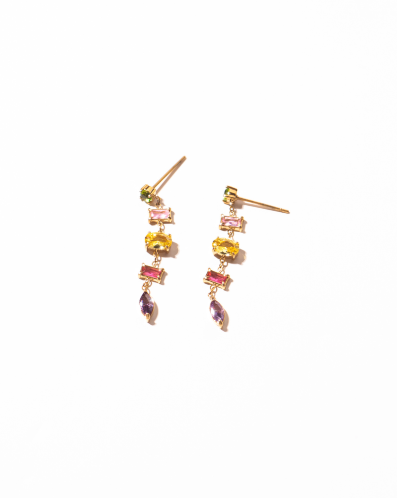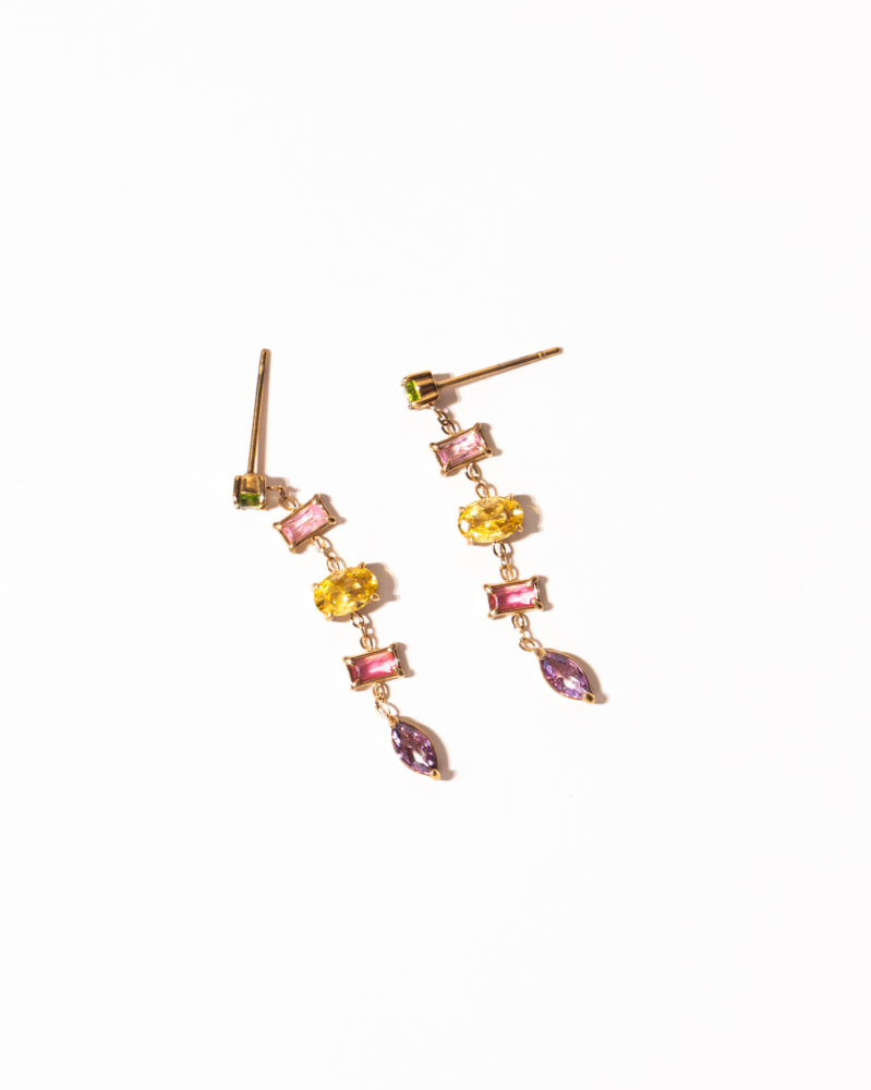 أقراط أمسية من مجموعة أمسية، مطلية بالذهب عيار 18، تتميز بتفاصيل أنيقة وأحجار براقة بتدرجات متلألئة، مصممة بأشكال وأحجام متنوّعة لتضفي لمسة راقية على إطلالتك. تتناغم بانسيابية مع قلادة أمسية وإسوارتها، لتُكمل حضورك بإطلالة متكاملة تنبض بالأناقة.